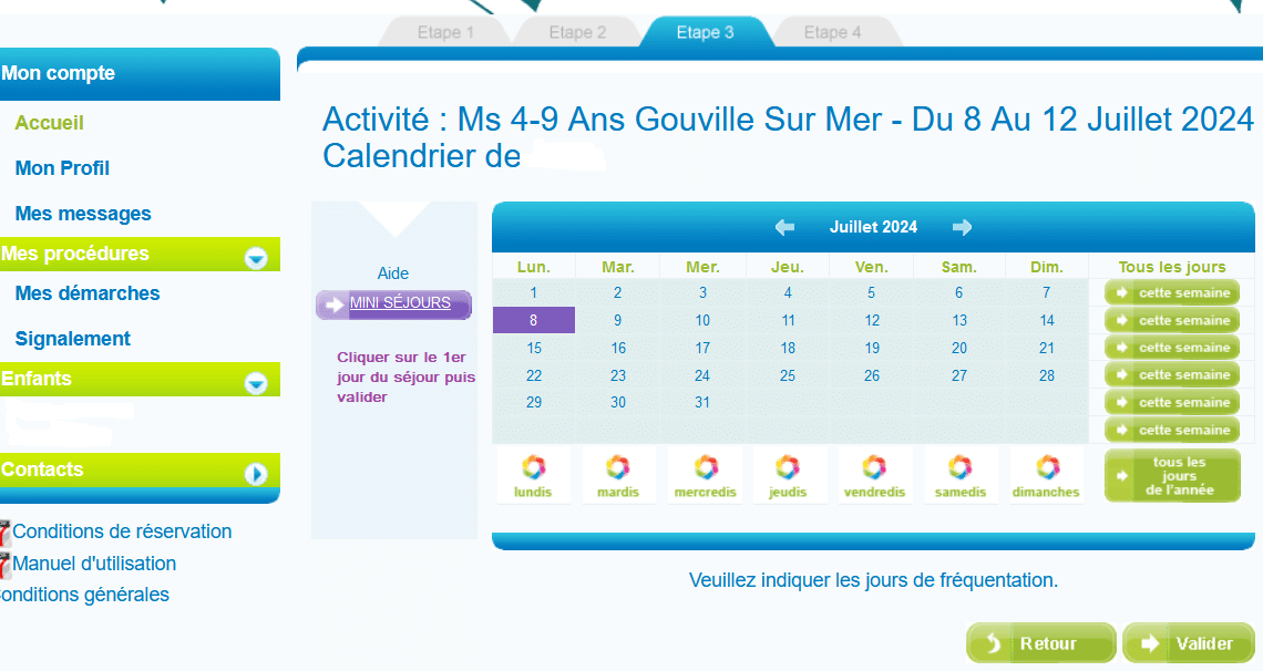 Afin qu’un maximum d’enfants puisse bénéficier des séjours de vacances, le nombre de séjour par enfant est limité à un seul dans un premier temps. Si des places sont disponibles après la période d’inscription alors les parents qui le souhaitent pourront bénéficier d’un deuxième séjour pour leur(s) enfant(s).