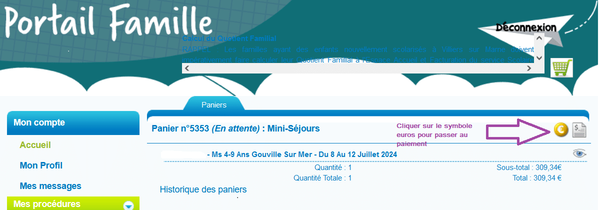 La tarification des séjours repose sur le quotient familial. Aussi, si ce dernier n’a pas été établi pour l’année en cours, les familles sont invitées à venir le faire calculer avant le règlement afin de bénéficier du tarif adapté à leur situation.